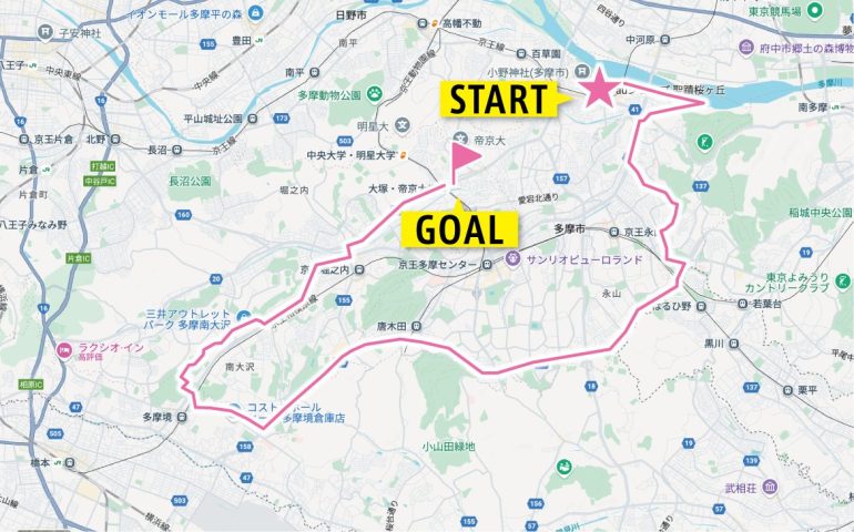 時間のある休日は思い切って遠出を。MAPは過去最高の走行距離を達成したコース。疲れたら無理せず歩いて、元気になったらまた走る。そんな感じで、行けるところまで行きます。多摩は道も広々としていて、基本的に走りやすく、長距離RUNにもおすすめです。