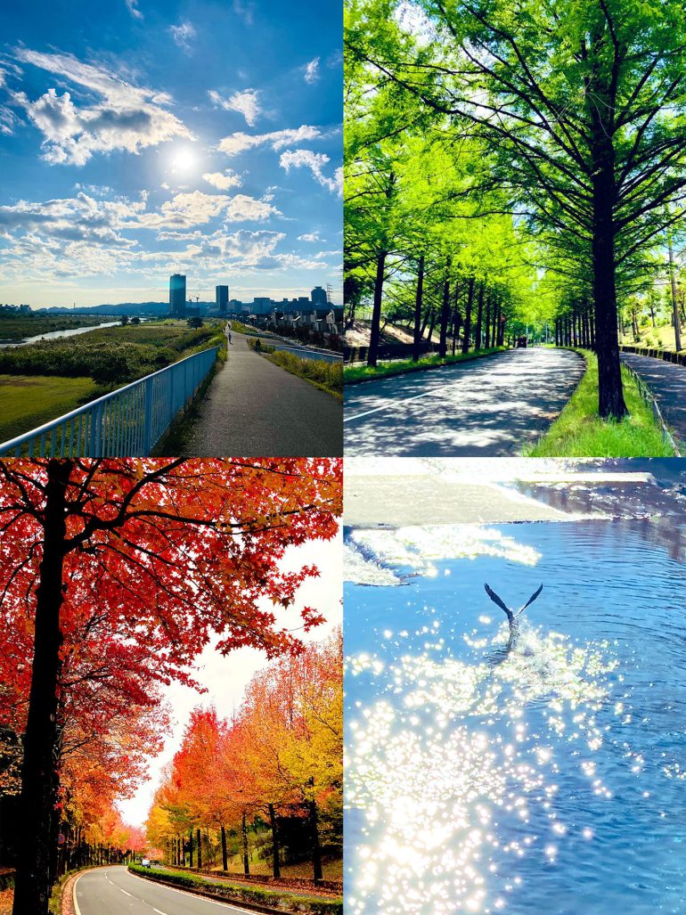 左上:多摩川沿いの抜けの良いランニングコース。タワマンも見えます