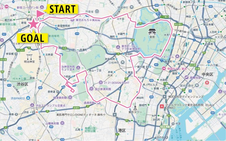 場所:都心エリア(新宿→神宮外苑→青山→六本木→虎ノ門→皇居→市ヶ谷→新宿)