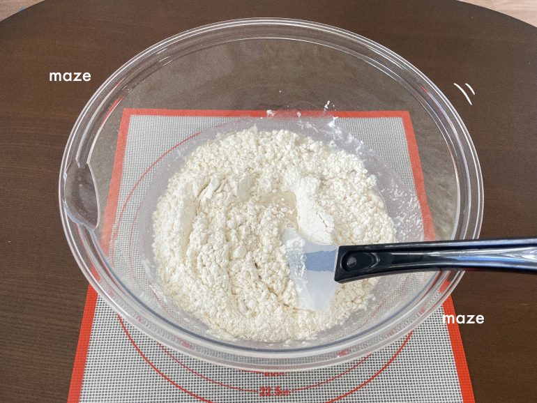 始めはヘラでさっくりと混ぜて、まとまってきたら手で根気強くこねます!