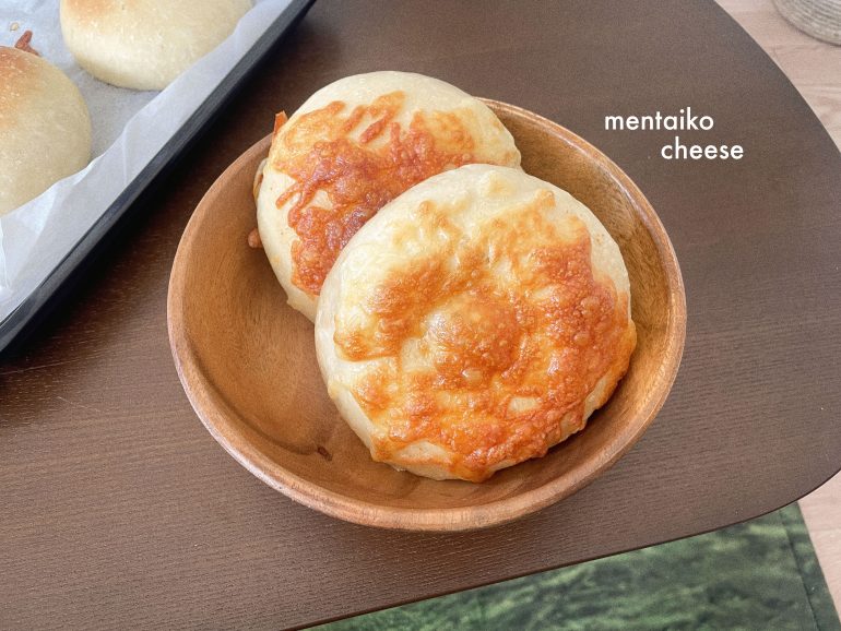 プレーン生地の中に明太子を入れ、チーズを乗せて焼くだけ!