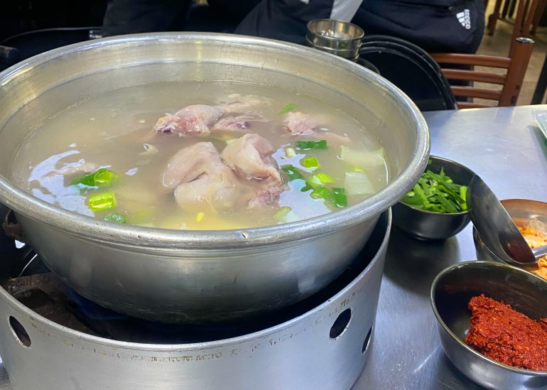 東大門・タッカンマリ通りにあるタッカンマリ専門店。席に通されると同時に鍋を持ってきてくれます!そもそもタッカンマリとは日本で言う水炊きみたいなものです。