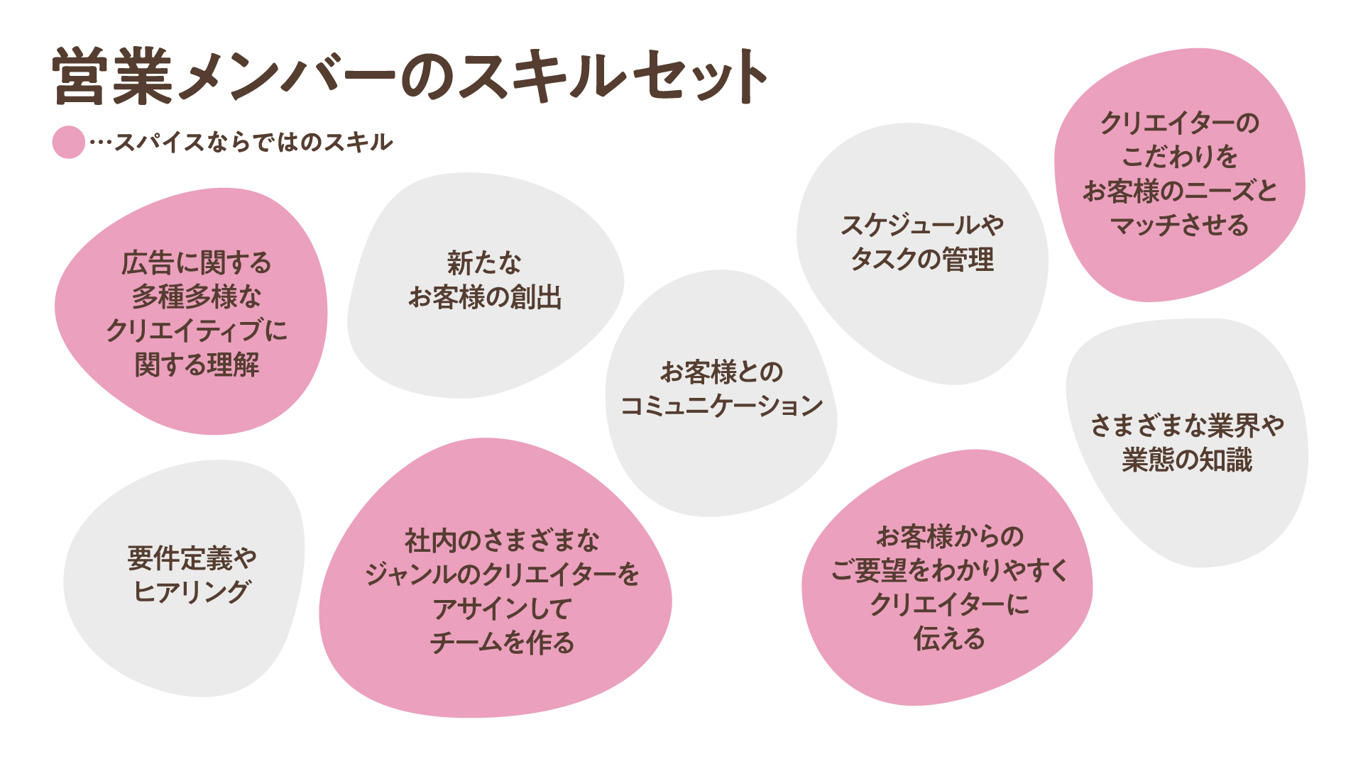 原 :あとは、クリエイティブのチームをアサインするという役割も大きいですかね。当然、お客様は社内のクリエイターを知らないので、「どのクリエイターがこの案件に対応できるか?」を考えて提案するのも営業としての大事な仕事かと思います。