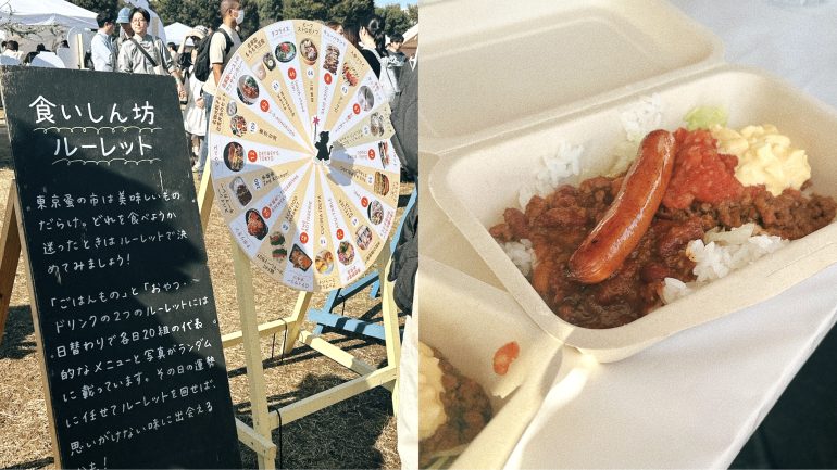 見た目も美しいヘルシーなお弁当から、何となく芝生で食べたいジャンクフードまで、目移りするフェス飯が沢山。広場にルーレットがあったので優柔不断な人にはありがたいですね。